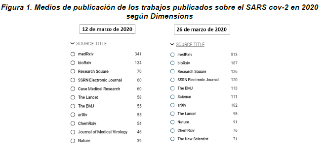 La pandemia obligó a acelerar la publicación de resultados científicos, desafiando los procesos de revisión por pares tradicionales. La regla Ingelfinger, que prohibía tácitamente la divulgación previa a la publicación en revistas científicas para asegurar así la fiabilidad de la información, había retrasado la adopción de repositorios hasta entonces. A raíz del cambio de paradigma, ahora las editoriales están aprovechando el lucrativo negocio de los cargos por procesamiento de artículos para el acceso abierto. Sin embargo, López-Cózar y Martín-Martín recalcan que la base de datos de Retraction Watch ha indicado más de 400 retracciones de artículos relacionados con COVID-19, provocando una serie de preguntas: ¿Para qué publicar en las revistas si los artículos pueden adolecer los mismos peligros que los preprints,?¿Si los preprints maliciosos pueden ser rechazados por la propia comunidad sin recurrir a las revistas, para qué las necesitamos?